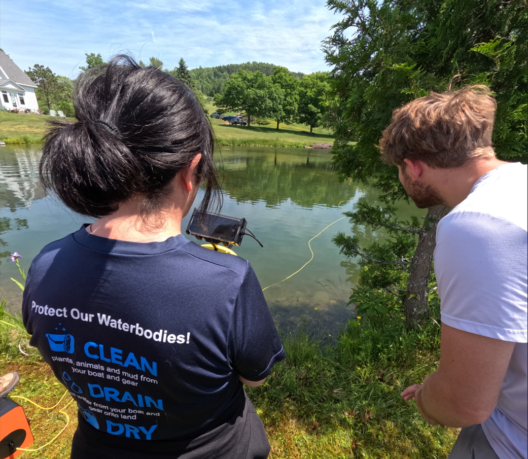 New Brunswick Invasive Species Council staff testing their underwater drone they’ll use to take pictures and samples of aquatic invasive species this summer.